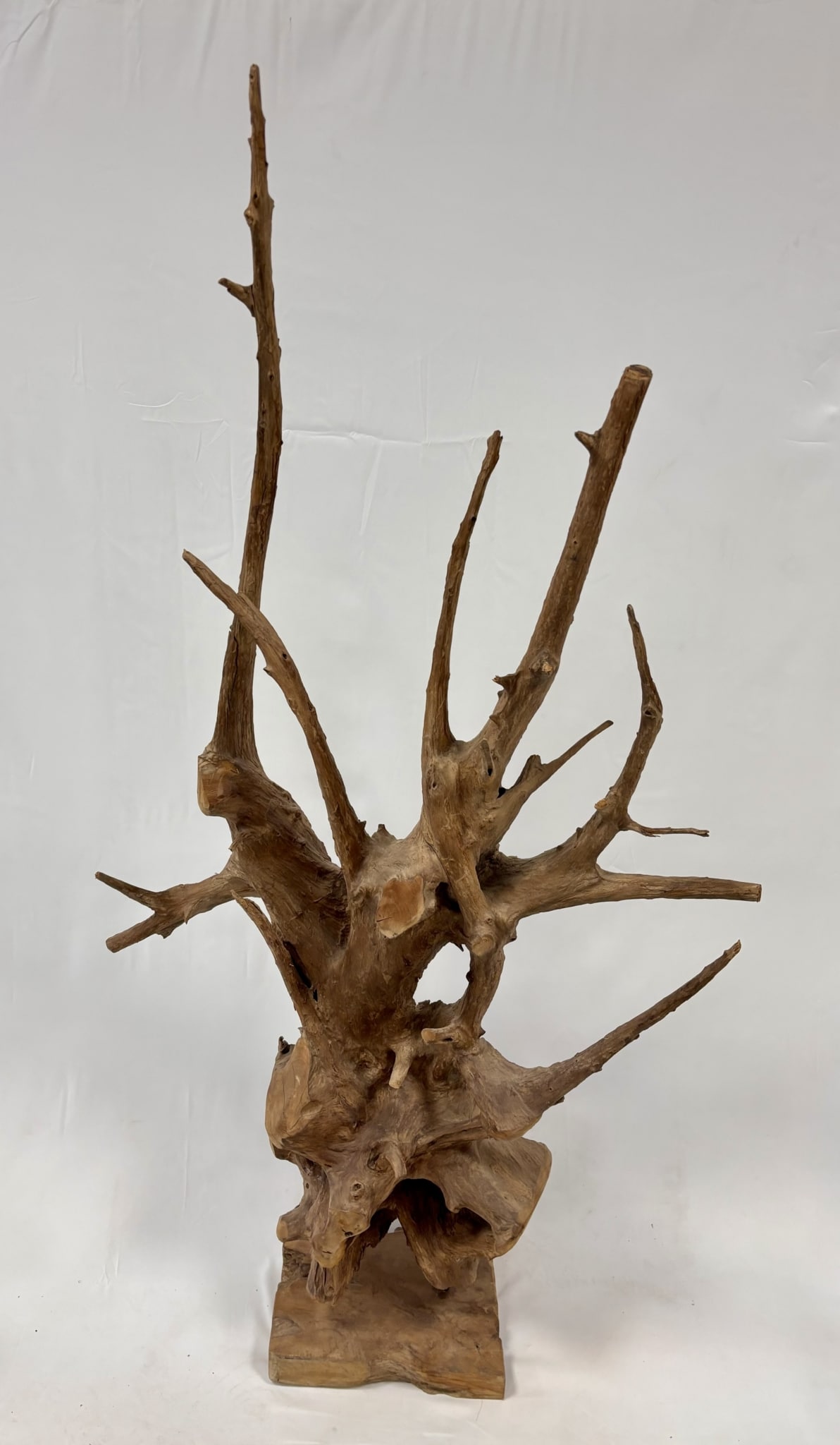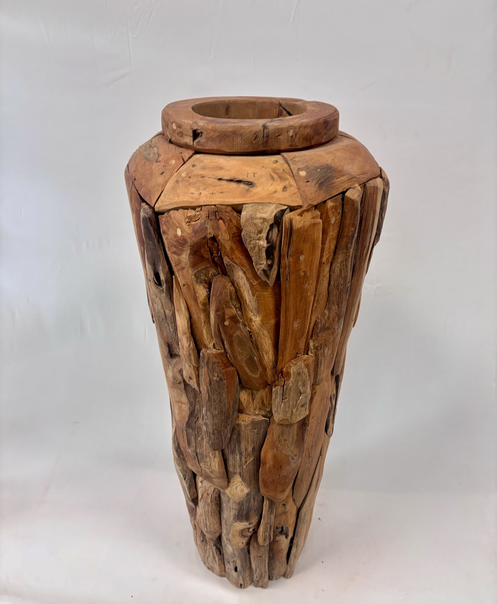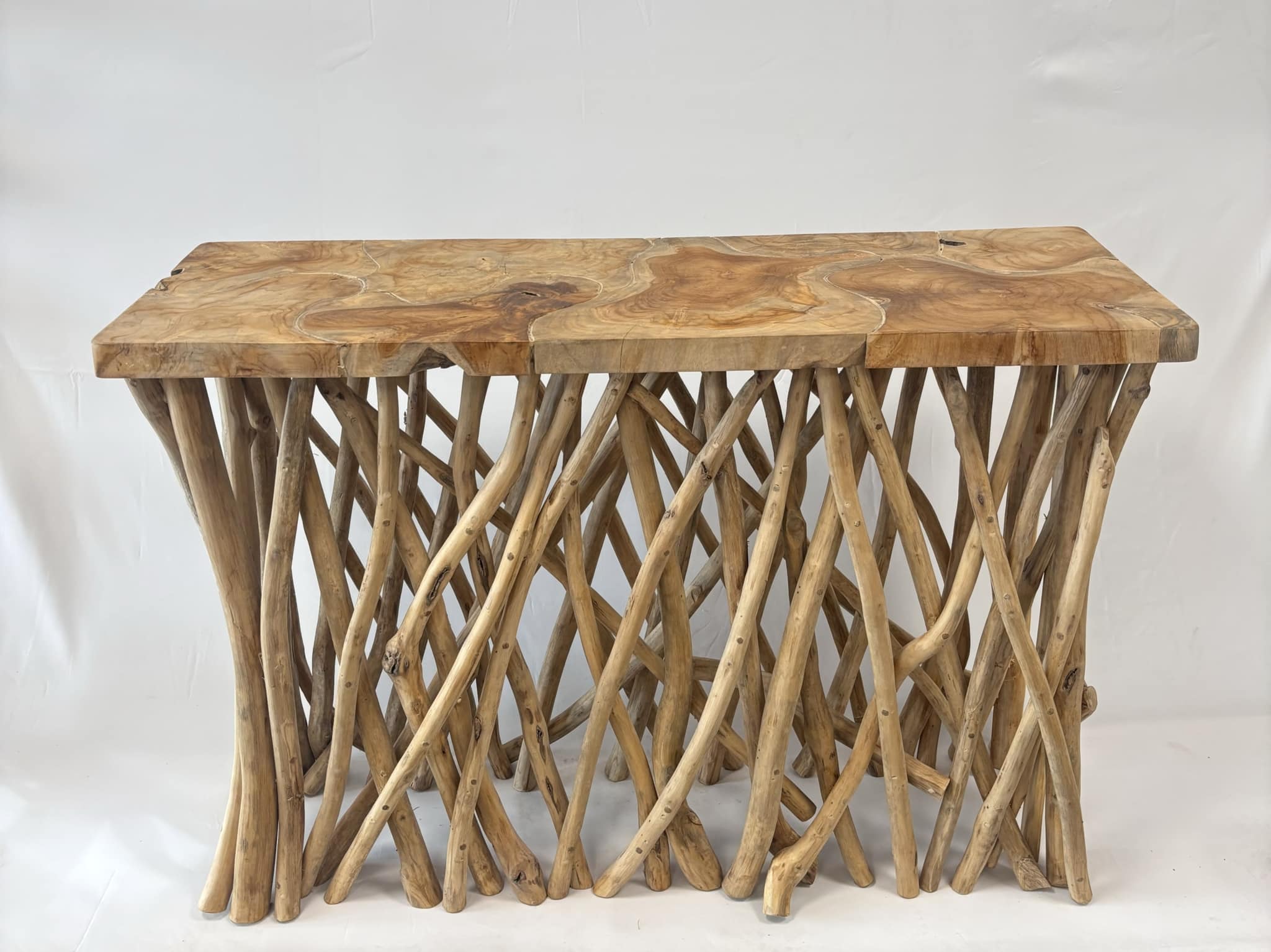 Nos produits sont essentiellement réalisés à base de teck de Java et de suar. Nous proposons différents meubles, accessoires décoratifs, plateaux, tables, fauteuils, pots de fleurs et panneaux muraux. Chaque pièce est faite à la main ce qui lui donne un caractère unique tout en combinant des matériaux écologiques. La plupart de ces matériaux sont des chutes de bois ou des racines que peu de personnes utilisent, les considérant souvent comme inexploitables. Nous donnons ainsi une valeur économique et fonctionnelle à nos éléments, tout en respectant l’environnement puisqu’il s’agit de bois issu de plantations certifiées par les autorités compétentes.