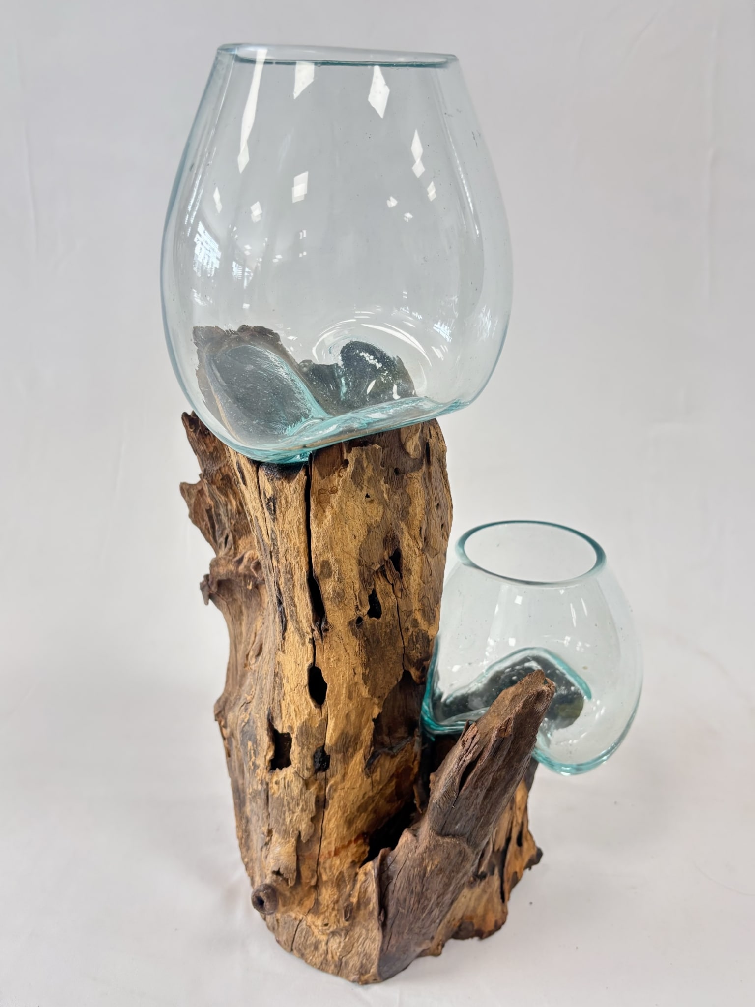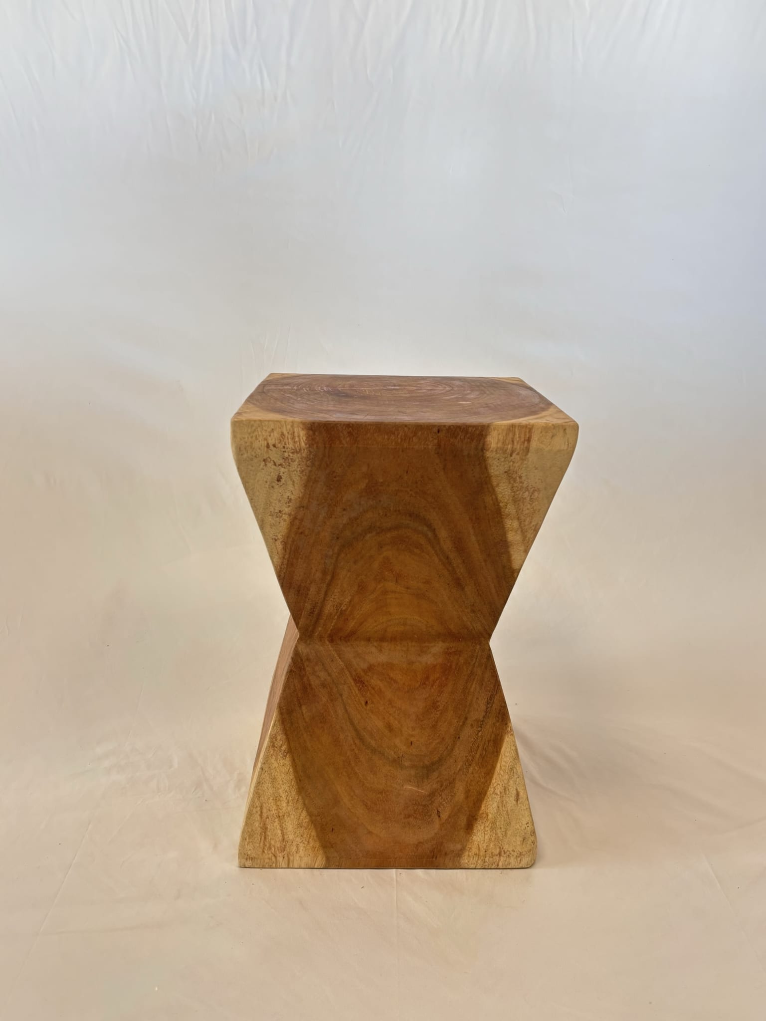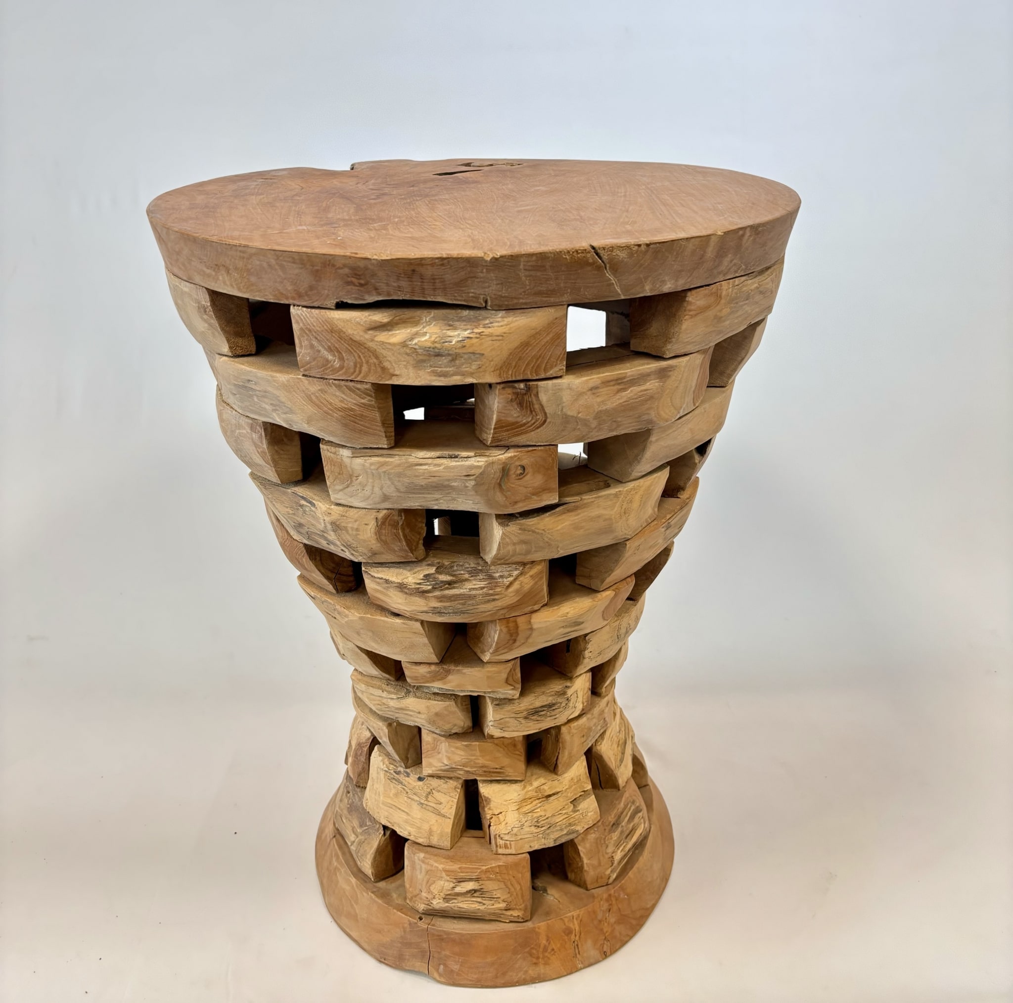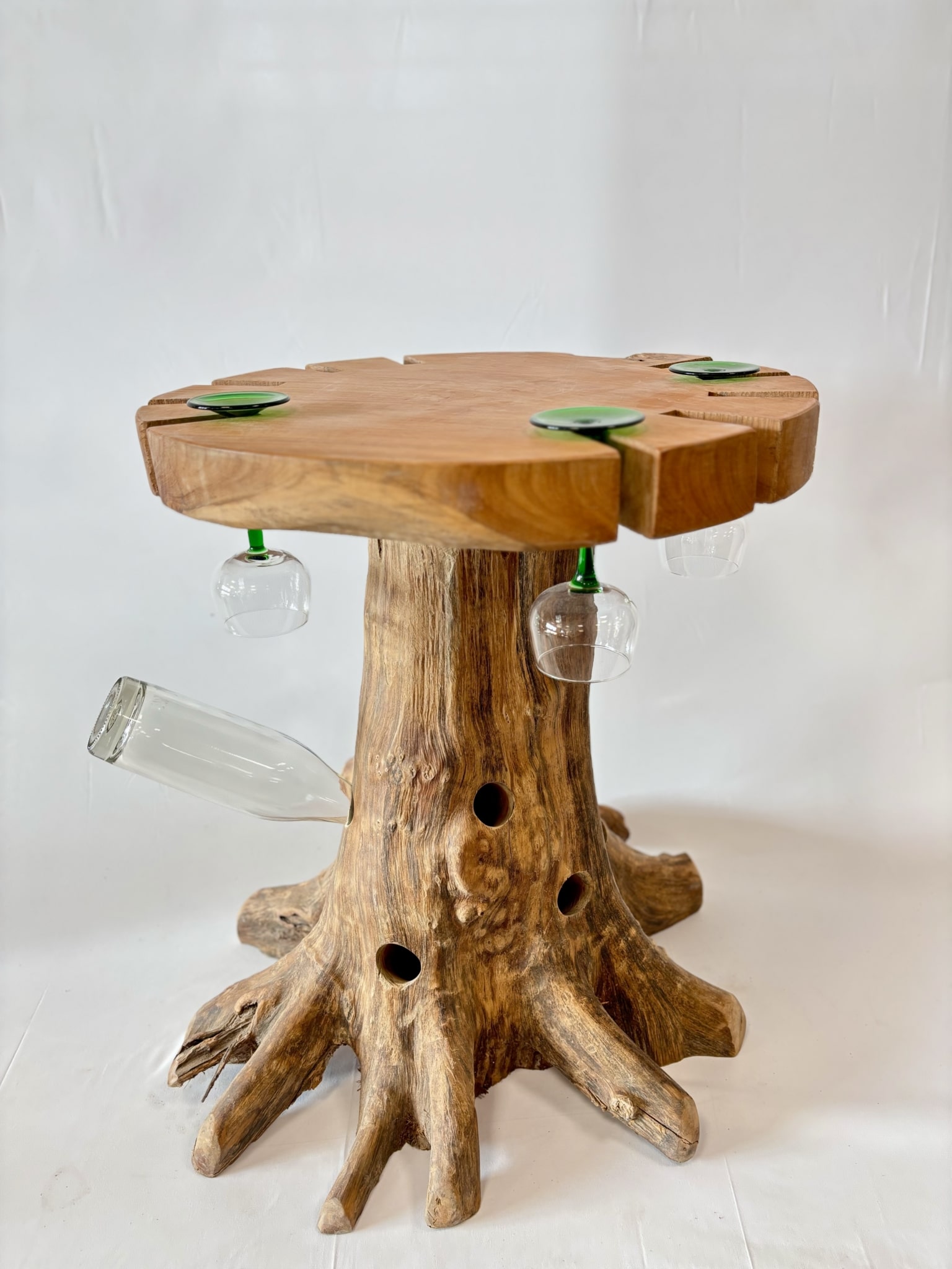 Nos produits sont essentiellement réalisés à base de teck de Java et de suar. Nous proposons différents meubles, accessoires décoratifs, plateaux, tables, fauteuils, pots de fleurs et panneaux muraux. Chaque pièce est faite à la main ce qui lui donne un caractère unique tout en combinant des matériaux écologiques. La plupart de ces matériaux sont des chutes de bois ou des racines que peu de personnes utilisent, les considérant souvent comme inexploitables. Nous donnons ainsi une valeur économique et fonctionnelle à nos éléments, tout en respectant l’environnement puisqu’il s’agit de bois issu de plantations certifiées par les autorités compétentes.